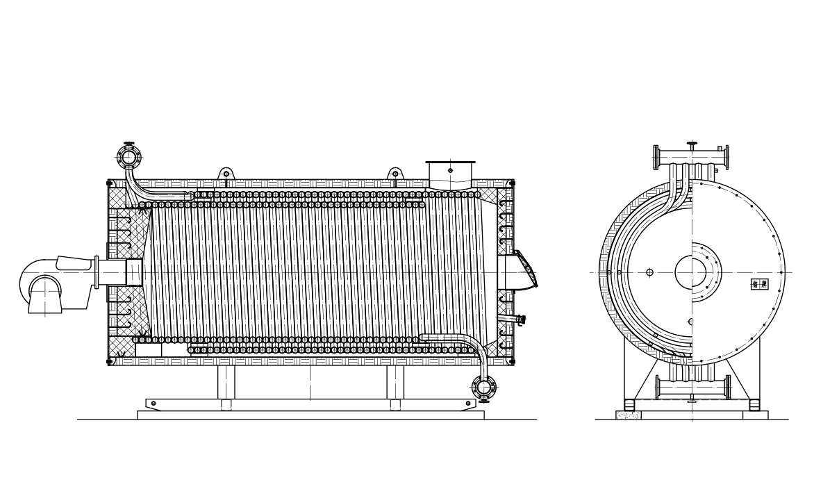 7、流程設(shè)計:煙氣三回程,介質(zhì)流經(jīng)內(nèi)外盤管,流速均勻,運行安全、穩(wěn)定。